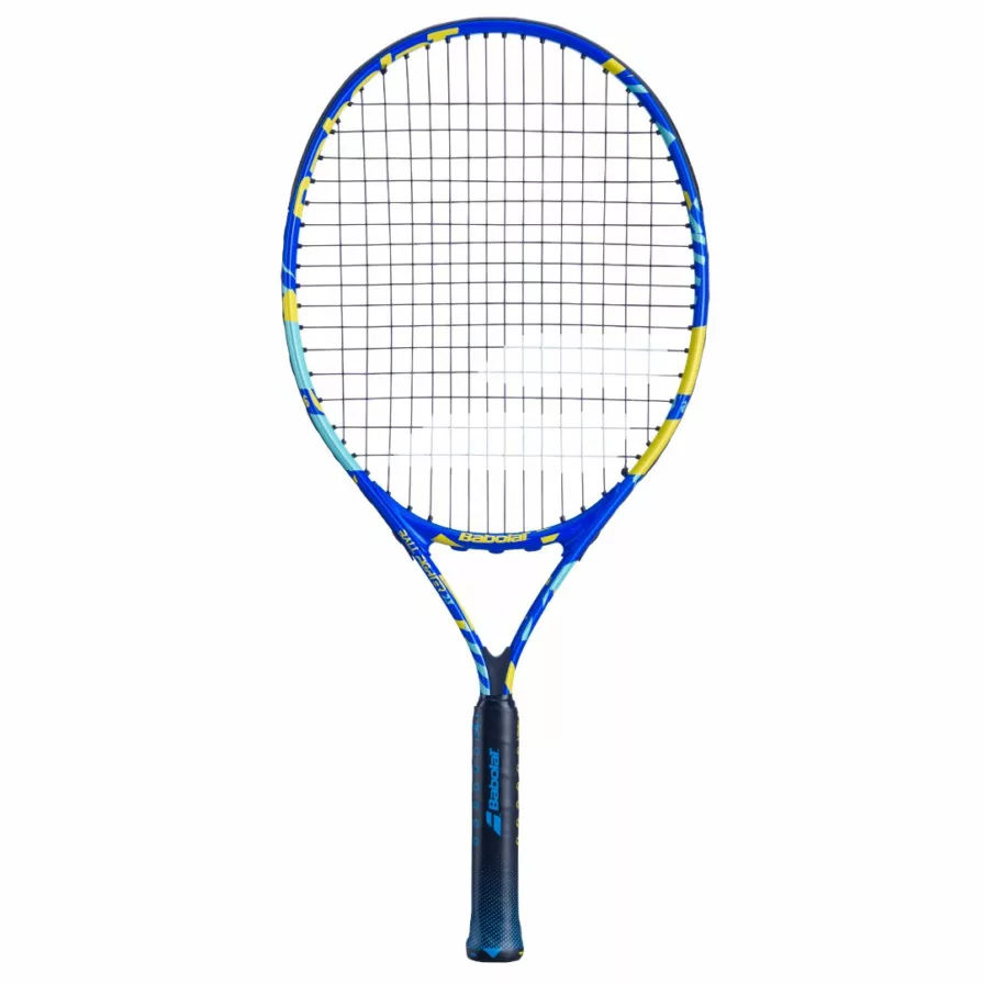 Denna junior-tennisracket är idealisk för barn i åldern ca 7–8 år som har kommit igång med att spela tennis. Den väger endast 200 g, har en låg balanspunkt på 285 mm, en längd på 23" och ett stort rackethuvud på 97", vilket gör den lätt att svinga och förlåtande vid träffar utanför sweetspot. Den är utrustad med visuella guider och ett barnvänligt grepp som gör det lättare för barnet att lära sig rätt grepp och teknik. Ett roligt och lärorikt sätt att utvecklas i tennis!