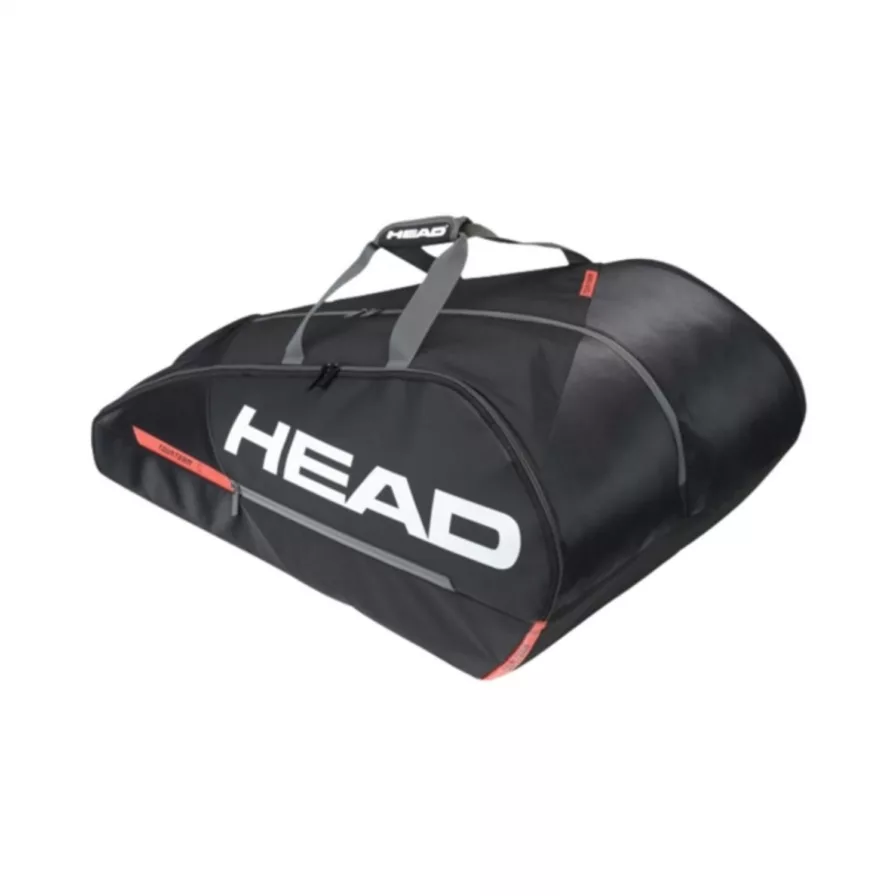 Denna tennisväska kan rymma upp till 15 racketar. Den har 3 stora fack varav det ena är ett termofack.