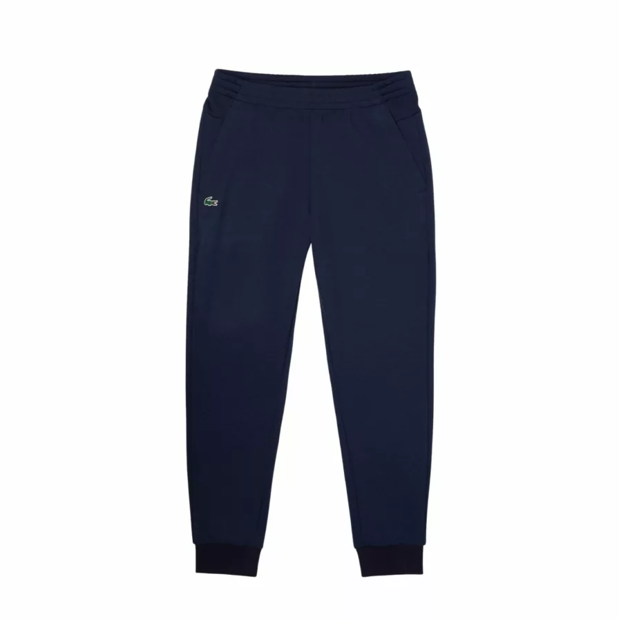 Med detta par träningsbyxor från Lacoste kommer du att stå vass på och utanför planen. Dessa byxor är gjorda av en bekväm bomullsblandning som gör dem både andningsbara och stretchiga. Byxorna har en ficka med dragkedja på varje sida, en stor meshpanel i länden, justerbar midja och ribbade kanter vid anklarna.