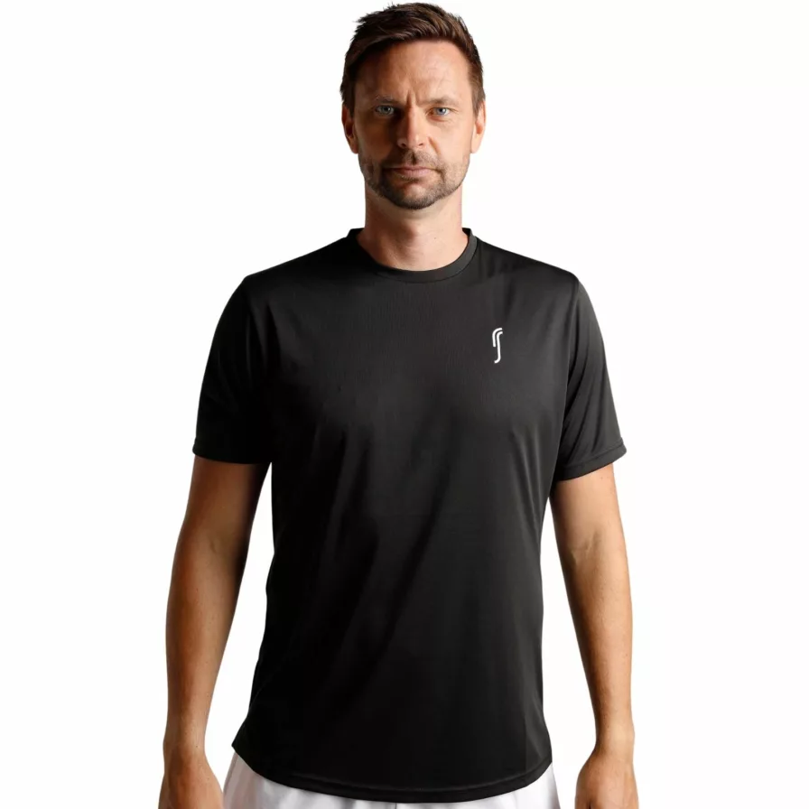 Vill du känna dig redo på banan? Då är det denna t-shirt från RS du ska ha. Den är tillverkad i en mjuk och bkeväm polyester, vilket ger dig de bästa förutsättningarna för ventilation och komfort. Dessutom har den en stilren design som kombinerar en klassisk svart med den klassiska RS logon på bröstet.