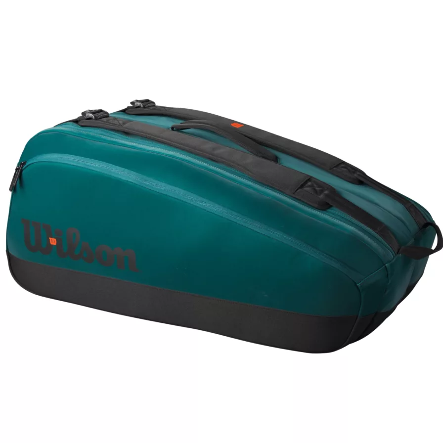 Denna Wilson tennisväska är perfekt för dig som letar efter en rymlig väska med plats för massor av utrustning. Väskan har måtten 73,5x33x33 cm och rymmer upp till nio racketar. Den har två stora fack, varav ett är termo-isolerat med Thermoguard för att säkerställa bästa förvaringsförhållanden för dina racketar. I det andra facket finns det gott om plats för kläder, bollar och annan nödvändig utrustning.