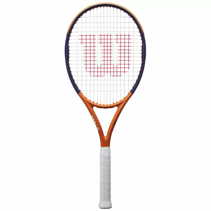Elegant Wilson tennisracket i Roland Garros-design – perfekt för motionärer och medelspelare som söker kontroll och komfort på banan!